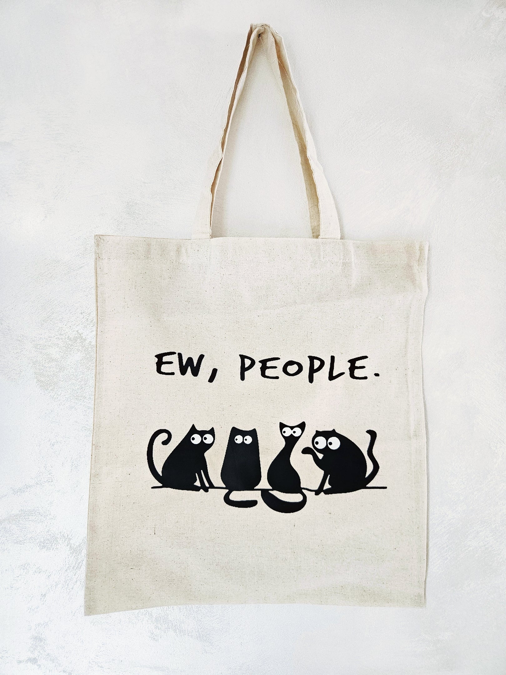 Natural Cotton Tote Bag with a Ew, People transfer on it.