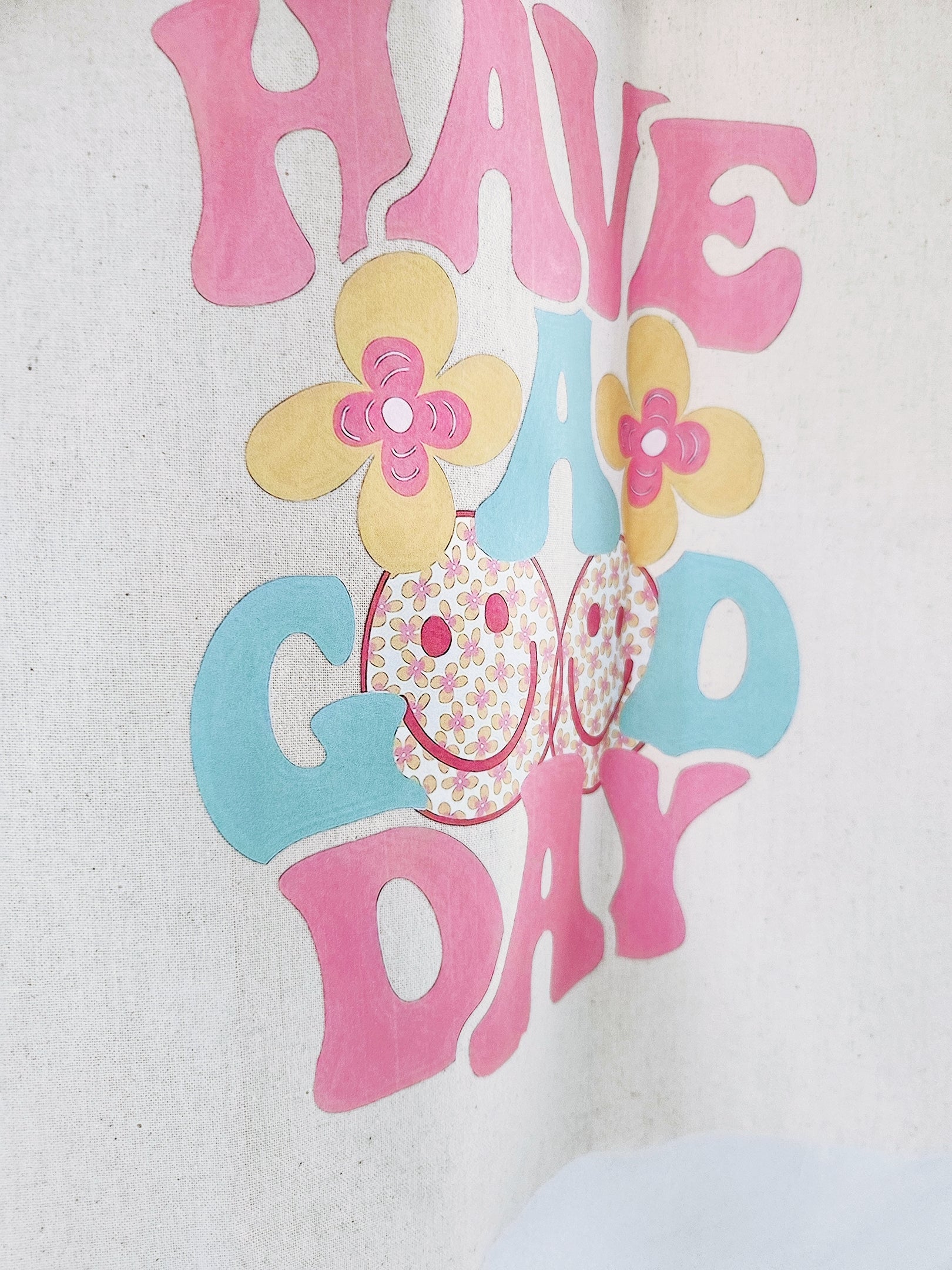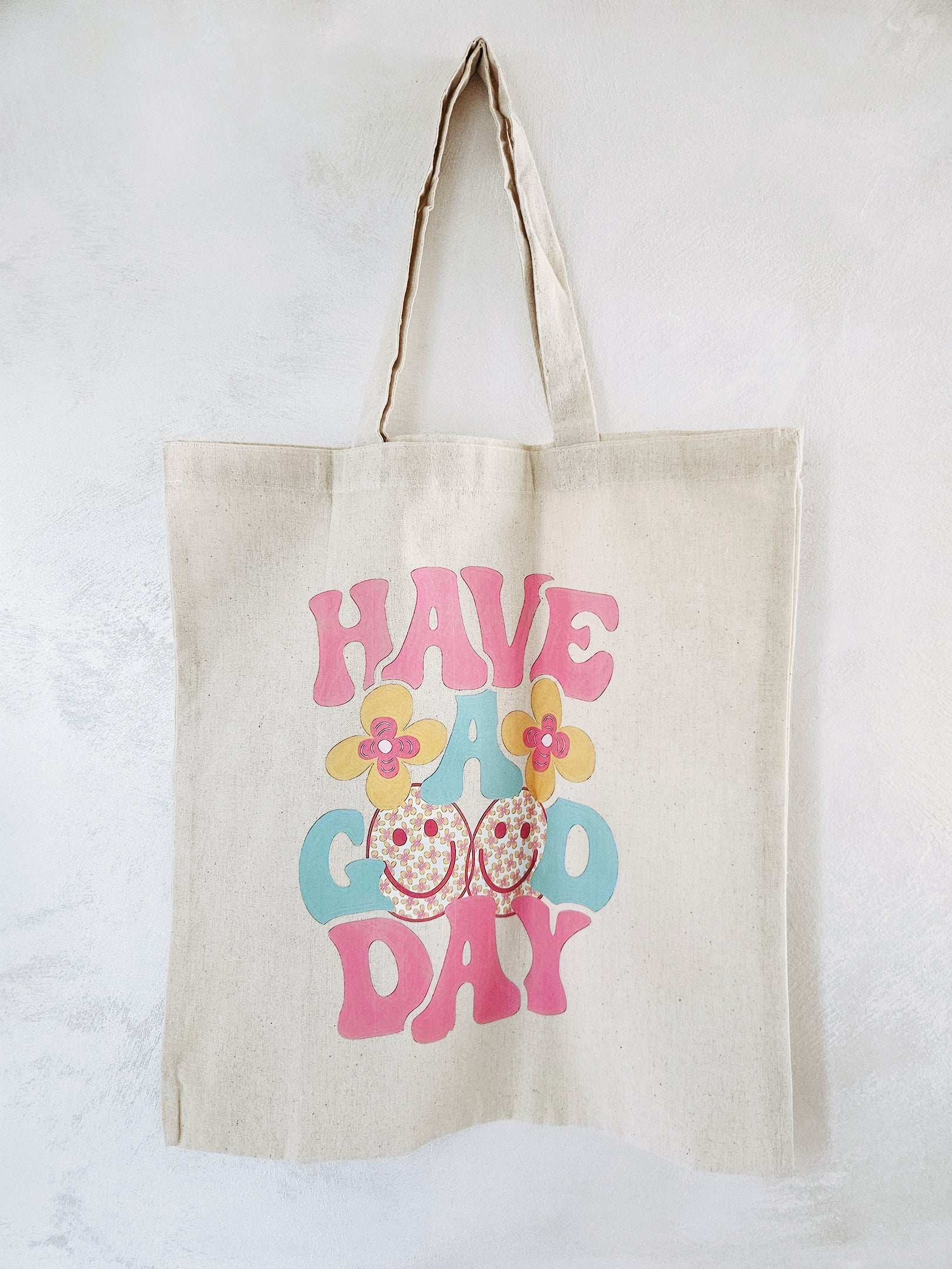 Natural Cotton Tote Bag with a Have a Good Day transfer on it.