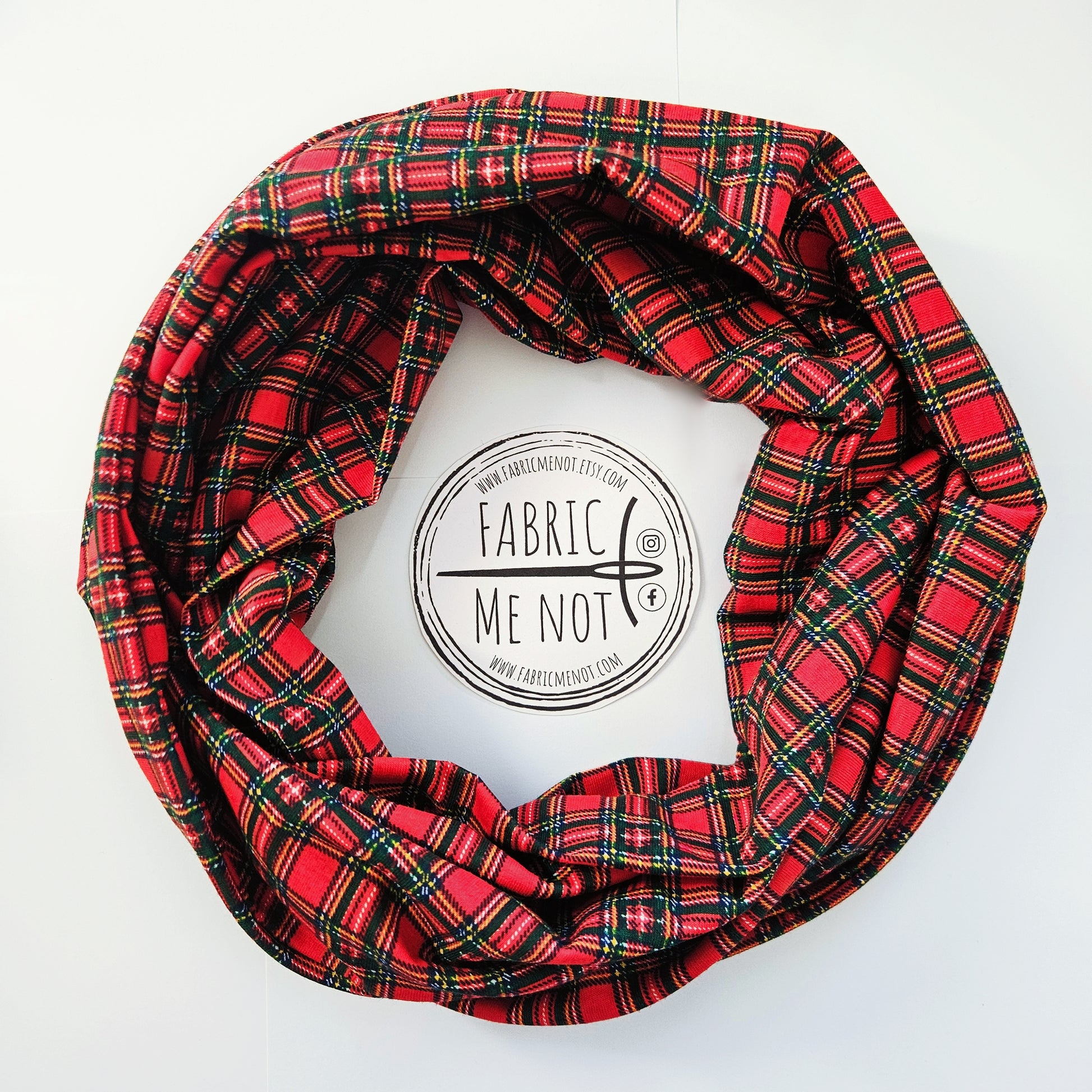 Red Tartan 100% Knitted Cotton Infinity Scarf