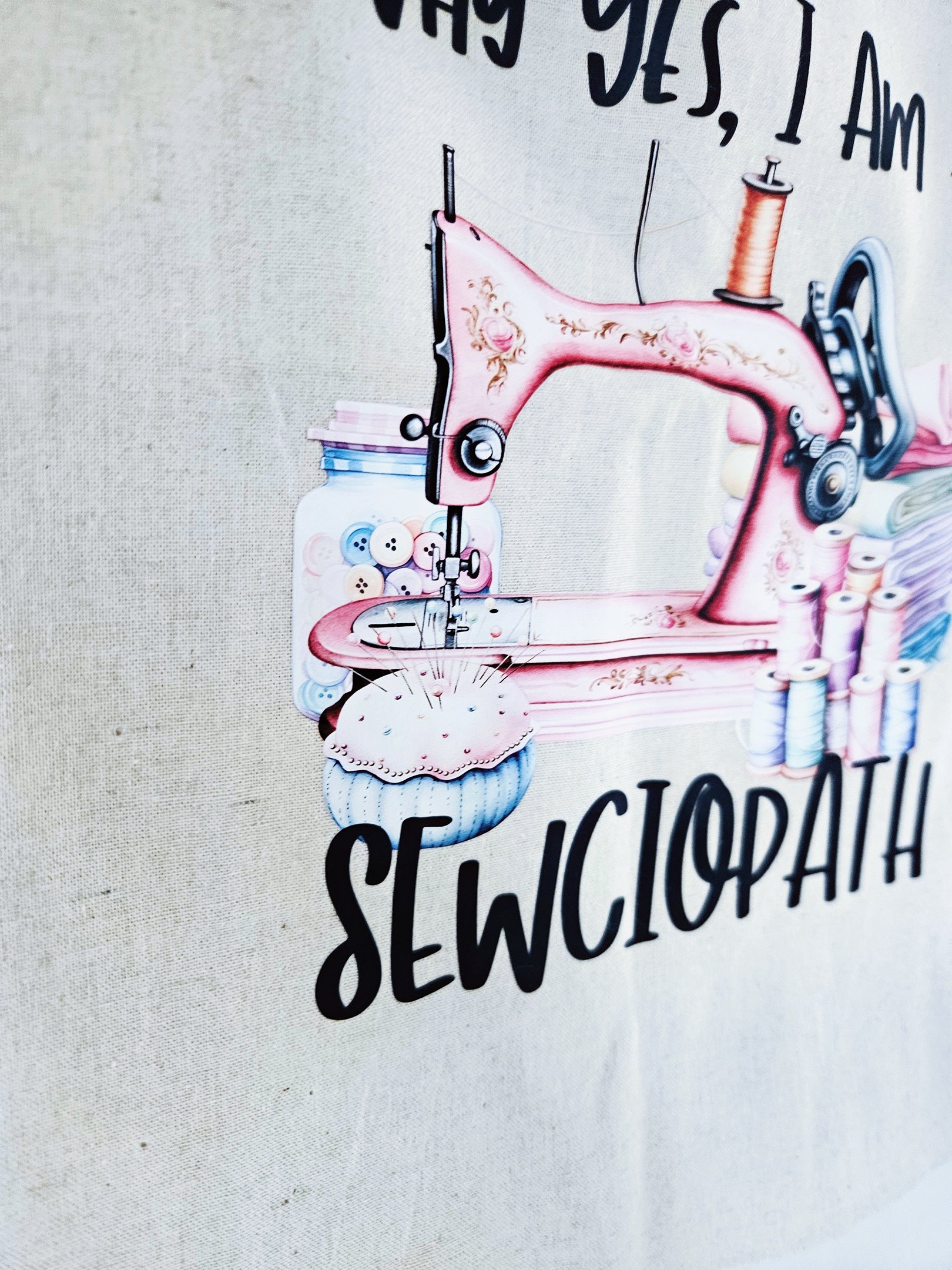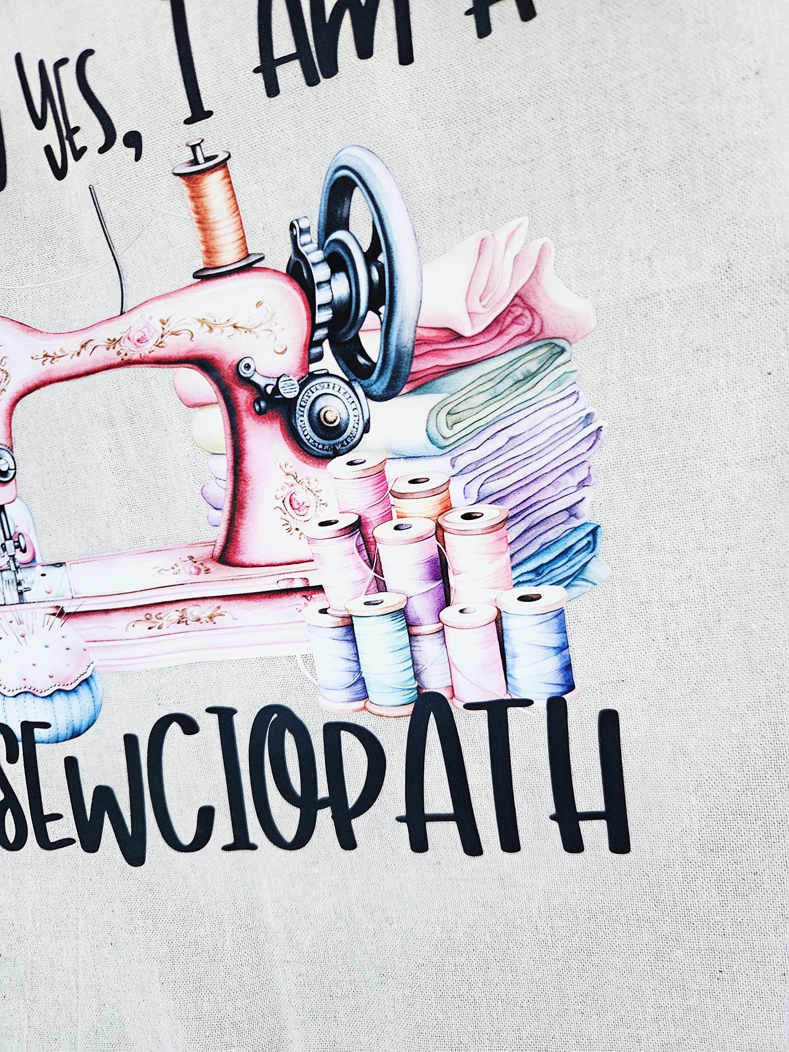 Natural Cotton Tote Bag with a Sewciopath transfer on it.